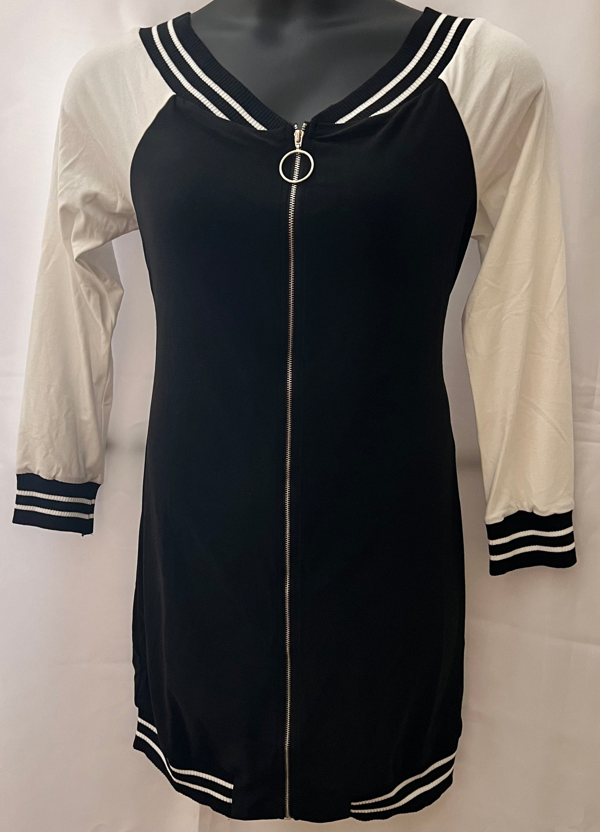 Long Sleeve, Bomber style dress with full zipper that can be worn on or off the shoulders.